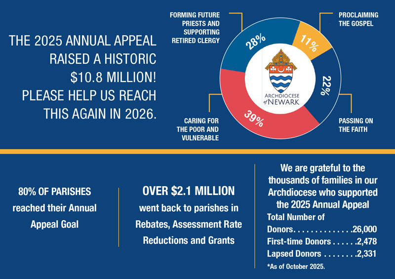 Each year we are invited to participate in the Annual Appeal, which is an opportunity to support essential ministries and programs of our Archdiocese. Your sacrificial support makes it possible for us to carry out the important work that we are called to do as missionary disciples of Jesus. Please consider participating in this year’s Appeal to help make a significant difference in many lives within our Archdiocese.